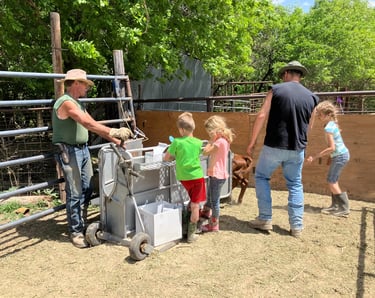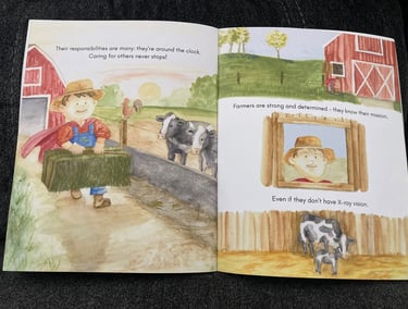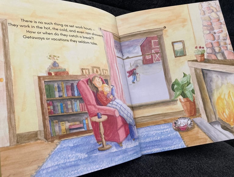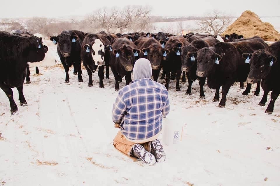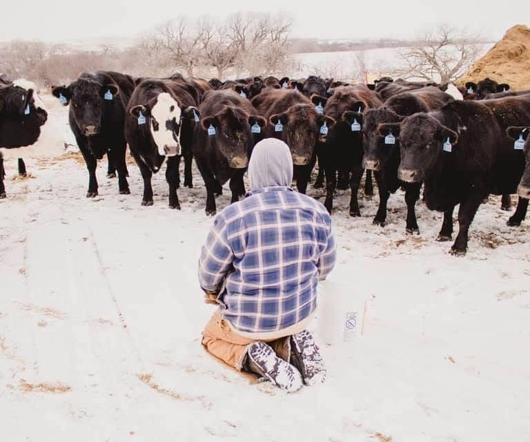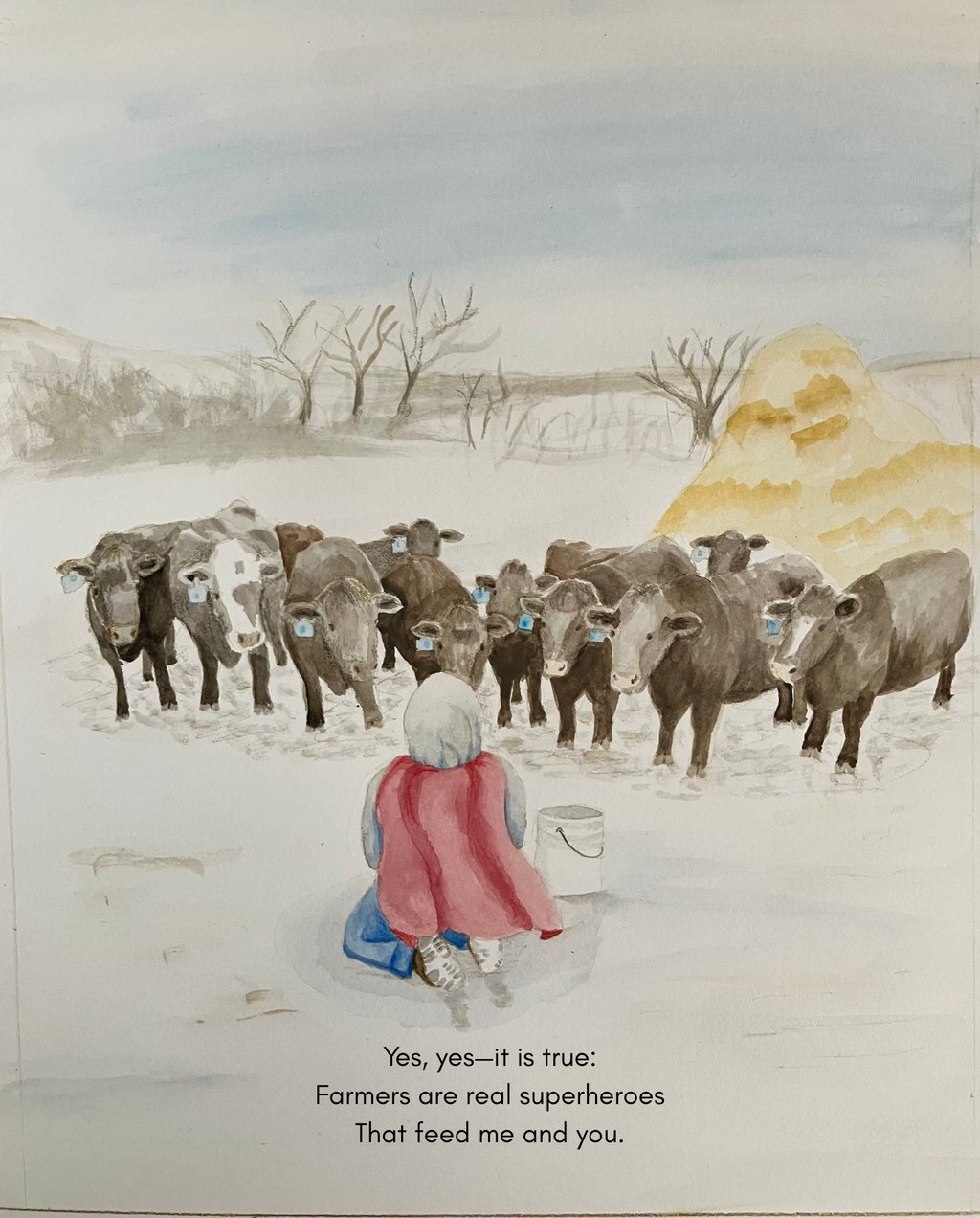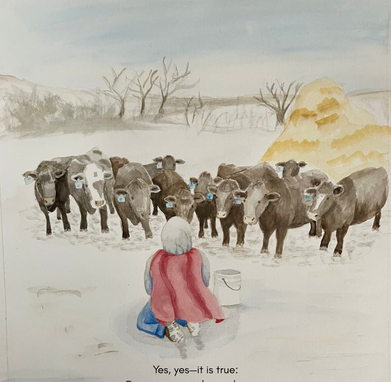 The illustrator's cousin with his cows